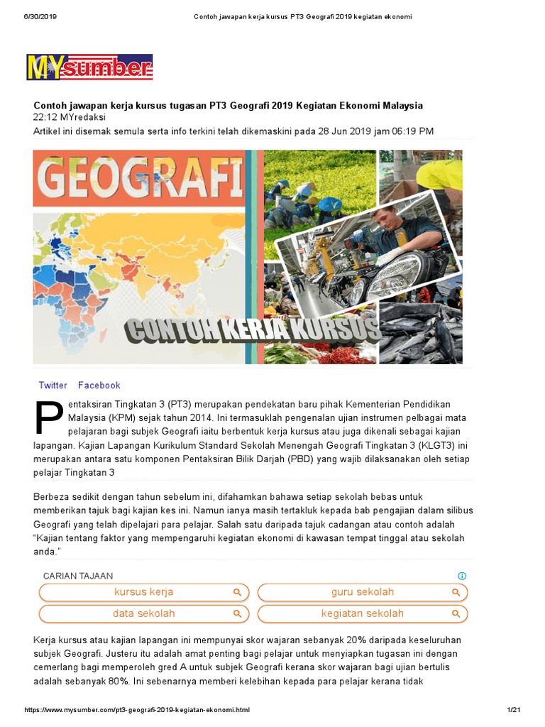 Contoh Jawapan Kerja Kursus Pt3 Geografi 2019 Kegiatan Ekonomi Pdf